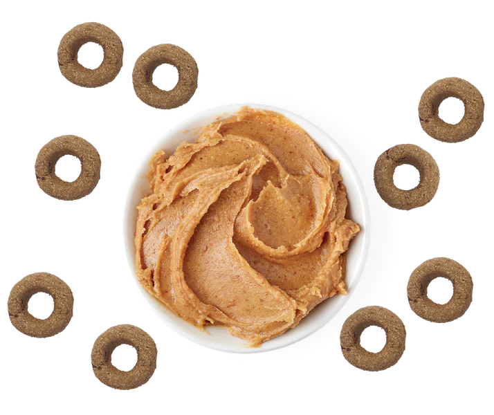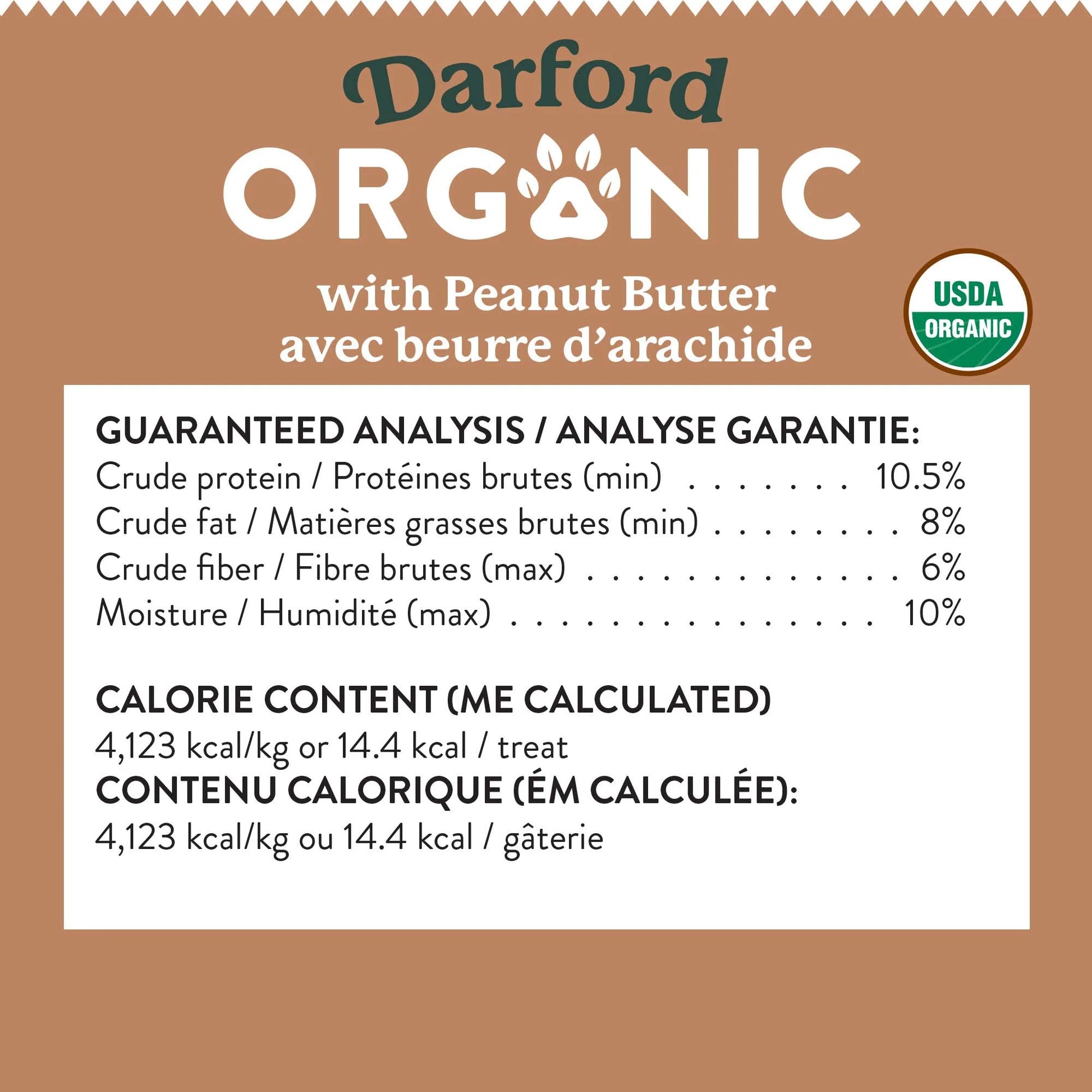 Organic barley, organic peanut butter, organic chicken, organic apples, organic carrots, organic cane molasses, organic sunflower oil, organic rolled oats, organic turmeric, mixed tocopherols (preservative), organic rosemary extract, organic sunflower lecithin.