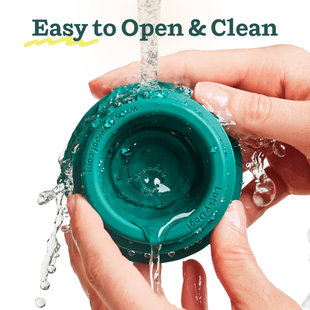 The Woof Pupsicle keeps dogs entertained for 20-40 minutes with its lickable, mess-free design and stable base. Easy to fill and dishwasher-safe, it works with store-bought or homemade treats. Made from safe, durable natural rubber, it offers healthy fun and helps stop boredom.